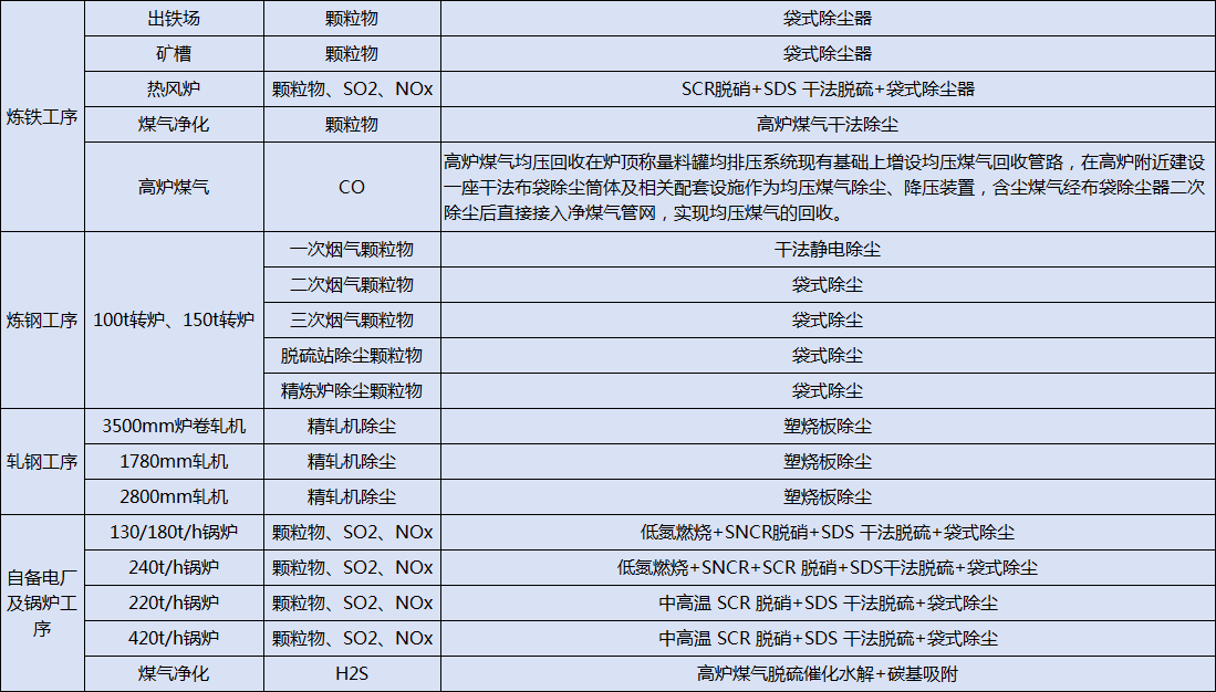 安鋼對所有有組織廢氣排放口和工序環(huán)節(jié)配備不同的治理設施進行有效地治理控制。主要有組織廢氣治理如下: