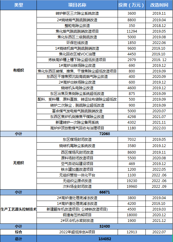 鄂城鋼鐵共投入18.4億元環(huán)保治理資金,其中包括:有組織排放投入7.2億元,無組織排放投入6.7億元,生產工藝源頭控制技術3.2億元,以及2022年超低排創(chuàng)A項目1.3億元。