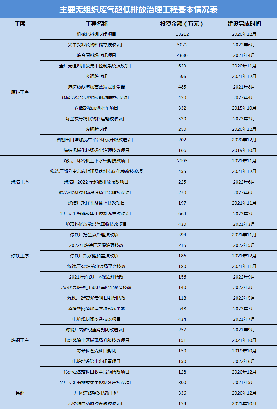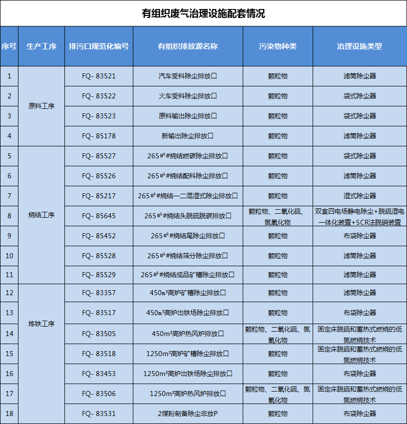 巨能特鋼在55個在用有組織廢氣排放口,均按超低排放要求配套了除塵、脫硫、脫硝等污染物治理設(shè)施進行規(guī)范化改造,進行有組織排放污染防治。