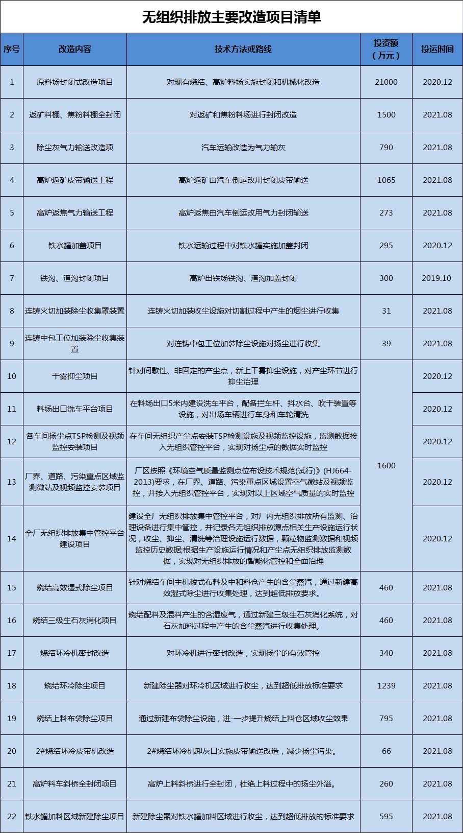 魯麗鋼鐵對公司物料儲存、物料輸送以及生產(chǎn)工藝過程等環(huán)節(jié)無組織排放源和管控措施進(jìn)行了預(yù)評估診斷,并建立了全公司無組織排放源清單共計977項,并對不符合要求的事項通過無組織排放管控措施進(jìn)行提升改造。