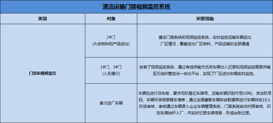 公司共設(shè)置1#門、2#門和3#門3個進(jìn)出口,其中2#門為大宗物料和產(chǎn)品進(jìn)出通道,并建設(shè)門禁系統(tǒng)和視頻監(jiān)控系統(tǒng),實時監(jiān)控運(yùn)輸車輛進(jìn)出廠區(qū)情況;1#門和3#門為員工進(jìn)出通道,安裝了視頻監(jiān)控系統(tǒng),通過有線傳輸方式將車輛出入記錄和視頻監(jiān)控畫面?zhèn)鬏斨?a href="http://www.uwang.cc/wu.html" target="_blank">無組織排放管控治一體化平臺,實現(xiàn)了廠區(qū)進(jìn)出車輛實時監(jiān)控。同時對門禁系統(tǒng)、計量系統(tǒng)和監(jiān)控系統(tǒng)進(jìn)行整合,實時展現(xiàn)了進(jìn)出廠車輛統(tǒng)計、車輛排放標(biāo)準(zhǔn)、大宗物料和產(chǎn)品運(yùn)輸量統(tǒng)計、廠外運(yùn)輸歷史臺賬、實時視頻監(jiān)控等方面內(nèi)容。