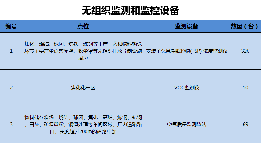 安豐鋼鐵分別安裝了326臺總懸浮顆粒物(TSP)濃度監(jiān)測儀,10臺VOC監(jiān)測儀,69臺空氣微站,實時監(jiān)測廠區(qū)的無組織排放情況,以便及時治理。