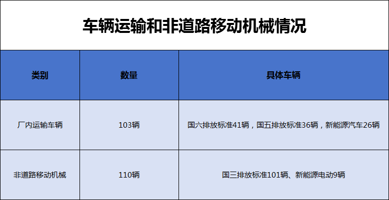 三明本部現(xiàn)有廠內(nèi)運輸車輛共計103輛,其中國六排放標準41輛、國五排放標準36輛、新能源汽車26輛,均進行了車牌號碼編碼登記管理?,F(xiàn)有廠內(nèi)非道路移動機械共計110輛,其中國三排放標準101輛、新能源電動9輛,均完成了地方環(huán)保編碼登記工作。