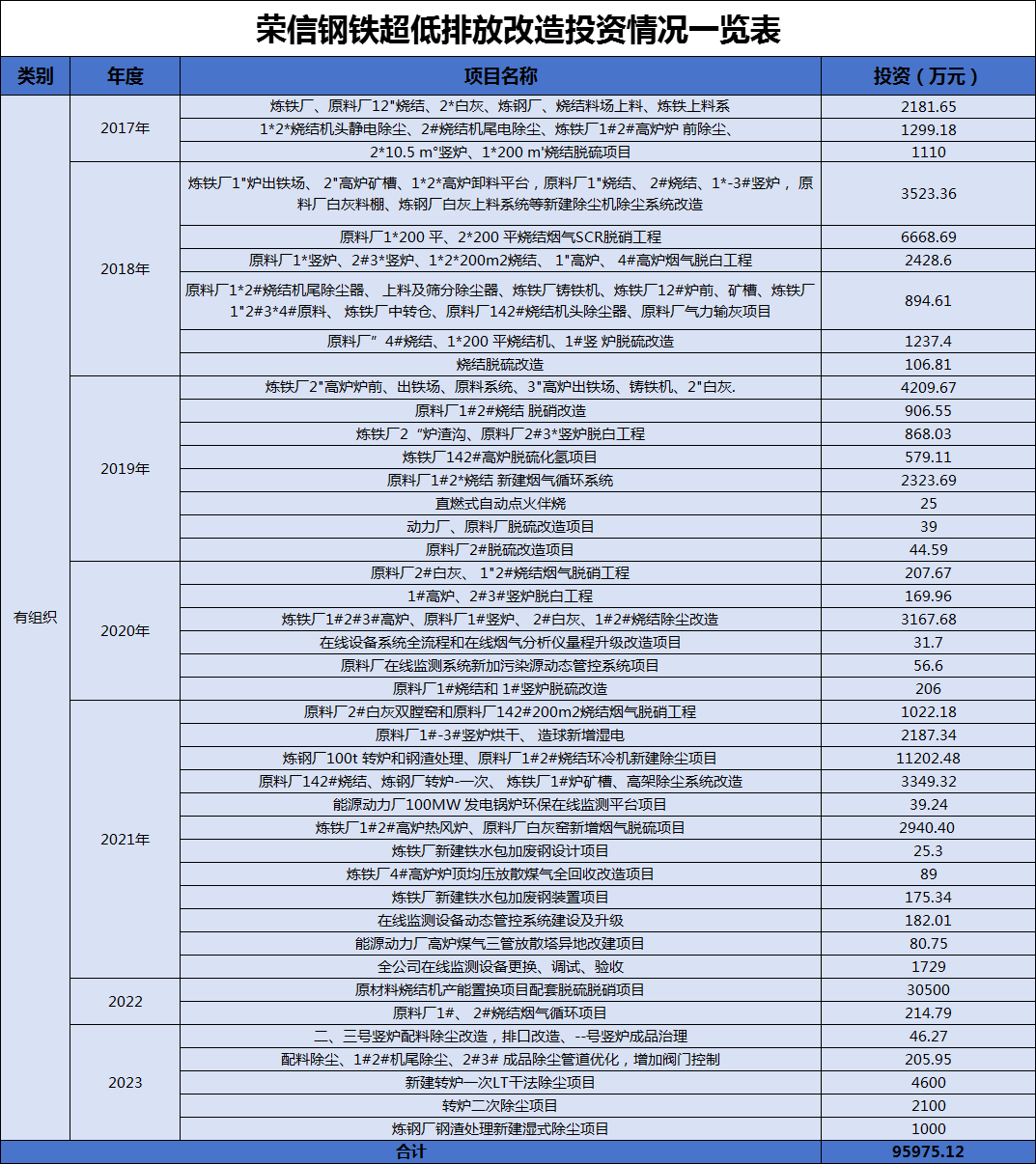 經(jīng)過5年多的努力,榮信鋼鐵有組織排放、無組織排放和清潔運(yùn)輸已全部完成超低排放改造,并在中鋼協(xié)網(wǎng)站進(jìn)行了掛網(wǎng)公示。