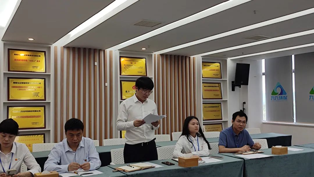 九九智能環(huán)保股份有限公司于4月23日,在公司總部多功能廳組織召開(kāi)了支部黨員大會(huì),會(huì)議由支委委員范菁菁主持,采取線上與線下結(jié)合的方式,公司全體黨員和入黨積極分子參加了會(huì)議。會(huì)議開(kāi)始后,全體起立奏唱國(guó)歌,高亢昂揚(yáng)的歌聲響徹會(huì)議室,讓人精神振奮。