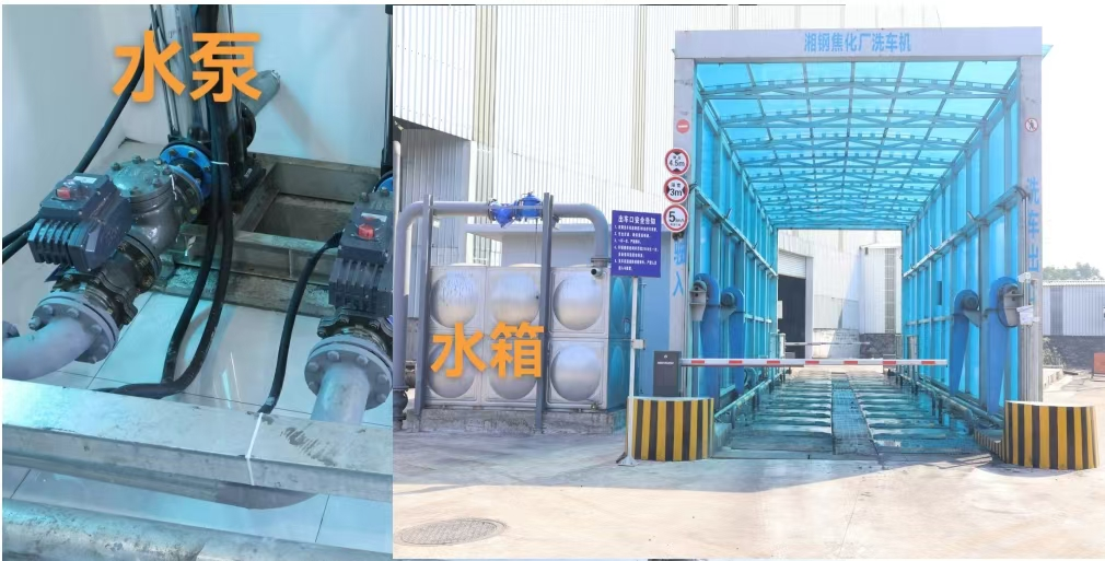 陽春新鋼在煉鐵廠料棚出口新建5套洗車機,該項目的洗車用水采用立式多級離心泵抽水箱中的水;水箱中配有液位傳感器,當水箱液位較低時及時補水,保證水源穩(wěn)定,清洗更干凈;洗車機采用石英砂過濾器,液下泵將清水池洗車的循環(huán)用水過濾后回流至水箱,保證循環(huán)水質;最后根據(jù)企業(yè)的使用頻率,及時對泥沙進行清除沉淀,沉淀水池采用目字形或田字形設計,便于后續(xù)清理淤泥、檢修。