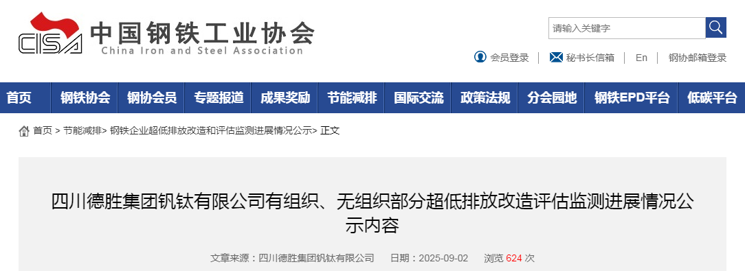 2025年9月2日,由湖南九九智能環(huán)保股份有限公司(以下簡稱“九九智能環(huán)?!保樗拇ǖ聞偌瘓F釩鈦有限公司(以下簡稱“德勝釩鈦”)自主研發(fā)并實施的超低排放智能一體化解決方案項目圓滿完成驗收。該項目已順利通過中國鋼鐵工業(yè)協(xié)會(以下簡稱“中鋼協(xié)”)組織的評審并正式掛網(wǎng)公示,標(biāo)志著德勝釩鈦在環(huán)保治理和智能化建設(shè)方面取得重大突破,成功打造了西南地區(qū)鋼鐵行業(yè)“生態(tài)保護與經(jīng)濟效益雙贏”的標(biāo)桿典范。