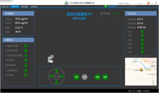 九九智能環(huán)保根據(jù)中升鋼鐵現(xiàn)場(chǎng)工作時(shí)間及物料含水率等情況,在東料場(chǎng)、西料場(chǎng)、合金倉(cāng)庫(kù)、燒結(jié)料倉(cāng)、燒結(jié)區(qū)、高爐區(qū)等落料口和皮帶通廊區(qū)域設(shè)置噴霧除塵機(jī)(霧炮)、干霧系統(tǒng)抑塵裝置、揚(yáng)塵監(jiān)測(cè)儀、攝像頭及無(wú)組織排放粉塵綜合治理智能平臺(tái)系統(tǒng)。對(duì)整個(gè)治理區(qū)域?qū)崿F(xiàn)全覆蓋抑塵及粉塵監(jiān)測(cè),建設(shè)環(huán)境監(jiān)測(cè)、治理、管控一體化平臺(tái),形成對(duì)無(wú)組織排放的實(shí)時(shí)監(jiān)測(cè),綜合管理加有效治理的一體化工程。徹底改善廠區(qū)環(huán)境,滿(mǎn)足環(huán)保要求。