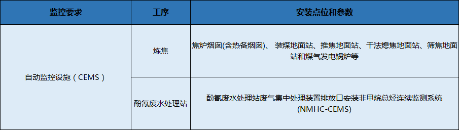 1、焦?fàn)t煙囪(含熱備煙囪)、裝煤地面站、推焦地面站、千法熄焦地面站、篩焦地面站和煤氣發(fā)電鍋爐等均安裝CEMS;酚氰廢水處理站廢氣集中處理裝置排放口安裝非甲烷總烴連續(xù)監(jiān)測系統(tǒng)(NMHC-CEMS);采用氨法脫硝或脫硫的設(shè)施應(yīng)按照相關(guān)標(biāo)準(zhǔn)規(guī)范安裝氨排放連續(xù)監(jiān)測系統(tǒng);CEMS、NMHC-CEMS和氨排放連續(xù)監(jiān)測記錄保存期限不得少于五年,并接入分布控制系統(tǒng)(DCS);每月有效數(shù)據(jù)95%以上時段小時均值滿足排放濃度限值要求。