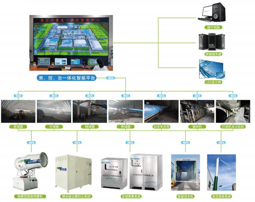 九九云環(huán)境的超低排放測控治一體化平臺,是一種利用先進(jìn)的傳感器技術(shù)、數(shù)據(jù)采集、數(shù)據(jù)分析和智能控制算法的系統(tǒng)。它基于分散式控制與集中式?jīng)Q策的智能聯(lián)動技術(shù),結(jié)合第三代智能霧炮、智能洗車機(jī)、干霧抑塵系統(tǒng)、空域霧幕(天霧)系統(tǒng)、高空旋噴(霧樁)系統(tǒng)、袋式除塵裝置、VOCs治理裝置等智能裝備,對平臺下達(dá)的實時指令迅速反應(yīng)、精準(zhǔn)治理。
