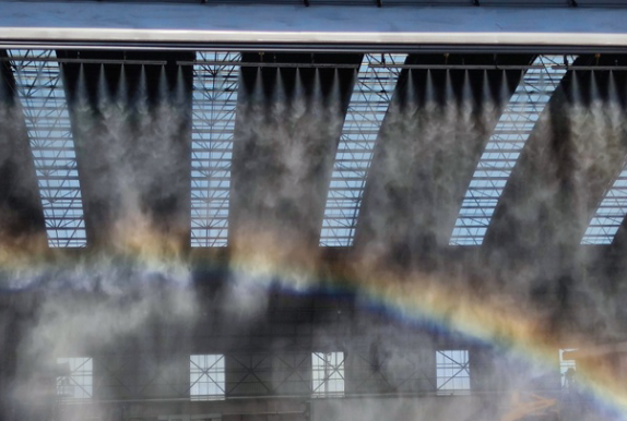 在物料輸送系統(tǒng)的關(guān)鍵位置,如破碎機(jī)、磨機(jī)等設(shè)備出口,安裝智能霧炮、干霧抑塵等除塵設(shè)備,庫頂配備袋式除塵器等,減少顆粒物的排放。