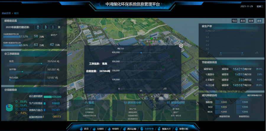 利用云計算、三維數(shù)字建模及大數(shù)據(jù)統(tǒng)計與分析等主流技術(shù)搭建,打造領(lǐng)先同行的碳排放管理平臺,監(jiān)測企業(yè)、分廠、各工序、設(shè)備的碳排放量,助力企業(yè)摸清碳家底、落實碳目標(biāo)、展示碳成效,全面實現(xiàn)“雙碳”目標(biāo)。