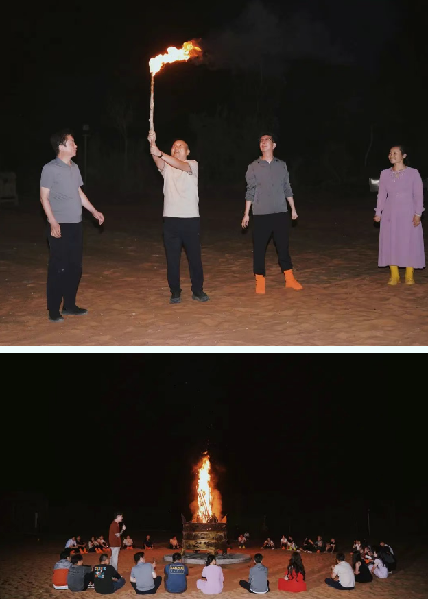 當(dāng)夜幕降臨,沙漠營地的篝火熊熊燃起,溫暖的火光跳躍著,映紅了每一張被風(fēng)沙親吻卻笑容洋溢的臉龐。大家圍坐一圈,談笑聲、歌聲在空曠的沙漠中回蕩,驅(qū)散了白天的疲憊。