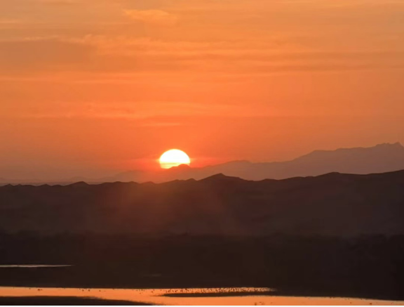 沙漠的黎明,更加震撼人心。當(dāng)你矗立沙丘之巔,看著天際線漸漸泛白、變紅。終于,一輪紅日磅礴躍出,金色的光芒瞬間潑灑開來,將連綿的沙丘染成流動的暖金。這氣勢磅礴的日出景象,讓人心生敬畏,也充滿了力量。