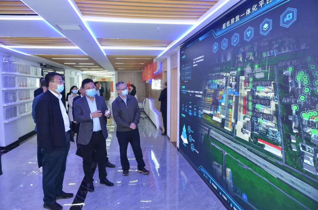 在電子大屏前,劉黎明董事長向張治平副廳長一行介紹了九九智能環(huán)保目前所持有的發(fā)明專利及自主研發(fā)的超低排放一體化平臺。目前九九智能環(huán)保已為一百多家工礦企業(yè)提供了超低排放改造服務,通過一體化平臺實現(xiàn)了“網(wǎng)格化監(jiān)測、智能化控制、精準化治理”三個環(huán)節(jié)緊密聯(lián)動,助力廠區(qū)無組織排放達標。