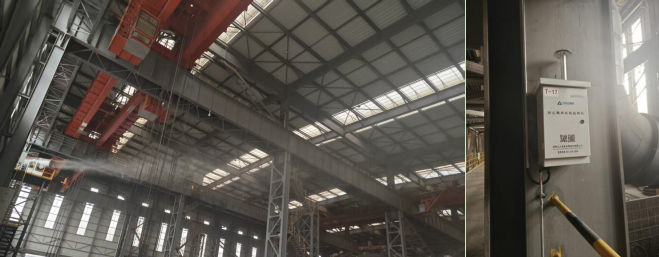 在石灰大棚、鋼渣中間庫(kù)及鋼渣車間等重點(diǎn)區(qū)域,同步安裝了超細(xì)智能霧炮與TSP粉塵監(jiān)測(cè)儀。系統(tǒng)平臺(tái)預(yù)設(shè)粉塵濃度報(bào)警閾值,當(dāng)TSP濃度超標(biāo)時(shí),可自動(dòng)遠(yuǎn)程啟停霧炮設(shè)備,實(shí)現(xiàn)抑塵治理的閉環(huán)控制,確保粉塵濃度快速恢復(fù)至正常范圍。