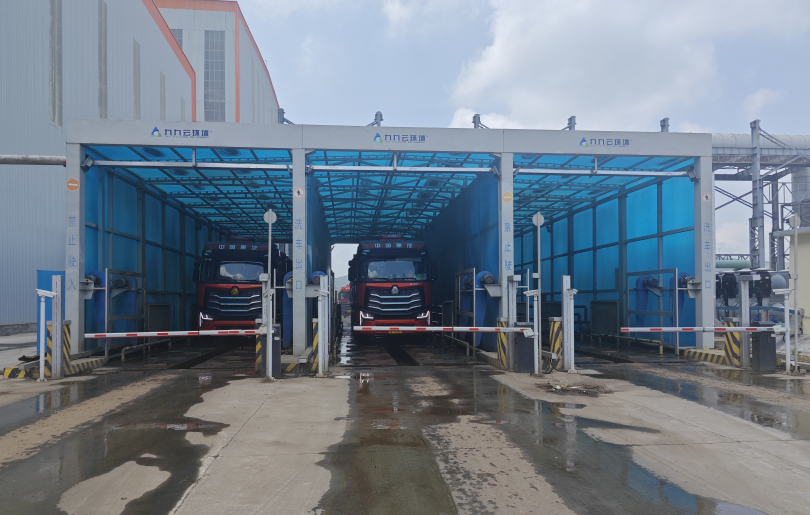 根據(jù)超低排放改造相關(guān)政策要求,洗車臺(tái)安裝位置應(yīng)距離料場(chǎng)出口小于5米。為此,九九智能環(huán)保在料場(chǎng)進(jìn)出口安裝了5套智能洗車機(jī),每套均配備視頻監(jiān)控系統(tǒng)及水、電等數(shù)據(jù)計(jì)量裝置,實(shí)現(xiàn)了對(duì)車輛沖洗全過(guò)程的實(shí)時(shí)監(jiān)控與數(shù)據(jù)采集。此外,針對(duì)業(yè)主實(shí)際需求,項(xiàng)目特別定制了三通道洗車機(jī),顯著提升了車輛清洗效率和整體作業(yè)能力。