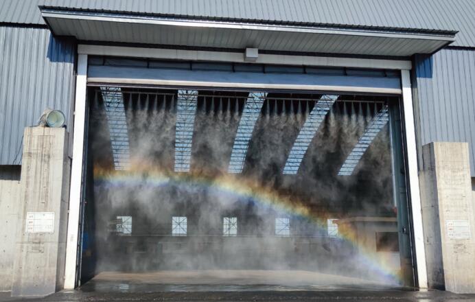 3、皮帶落料口附近皮帶上設(shè)置來料傳感器,控制箱和來料傳感器聯(lián)動(dòng),檢測(cè)到皮帶上有物料時(shí),立即開啟干霧抑塵系統(tǒng)進(jìn)行降塵。