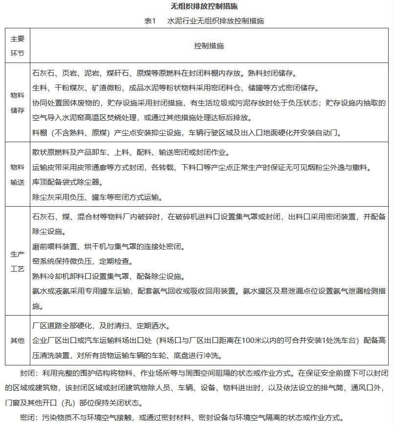 有組織排放具體指標要求見附件1。達到超低排放的水泥和焦化企業(yè)每月至少95%以上時段排放濃度小時均值滿足上述要求。