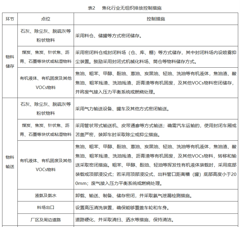 物料儲存、物料輸送、生產(chǎn)工藝過程、敞開液面(焦化)等無組織排放源,在保障安全生產(chǎn)的前提下,采取密閉、封閉等有效控制設施。無組織排放控制設施與生產(chǎn)設施同步正常運行,產(chǎn)塵點及生產(chǎn)設施無可見煙粉塵外逸,廠區(qū)整潔無積塵、無明顯異味。無組織排放控制具體要求見附件2。