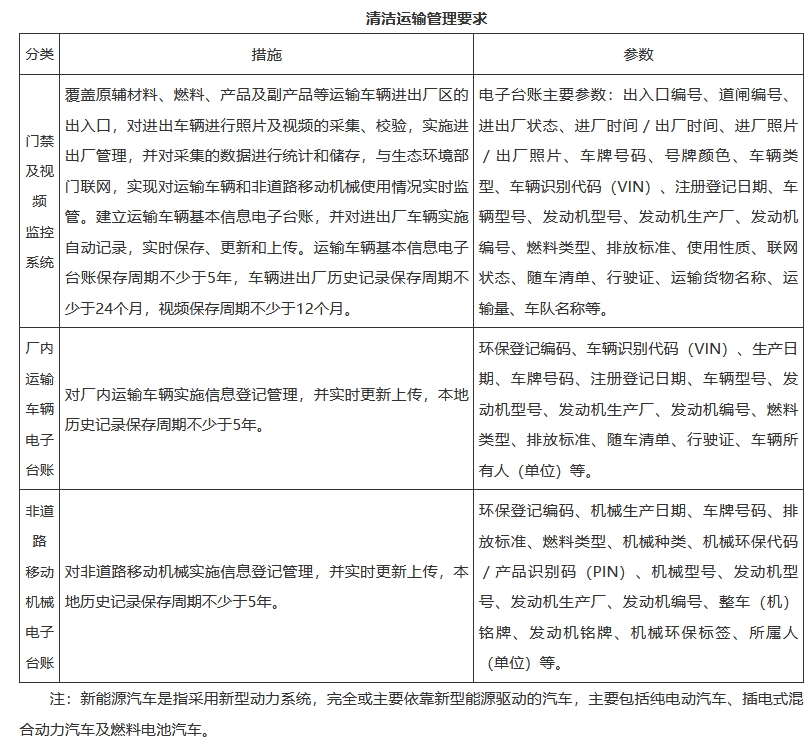 配備專職人員加強運輸管理,建設門禁及視頻監(jiān)控系統(tǒng),以及進出廠運輸車輛、廠內運輸車輛、非道路移動機械電子臺賬。具體要求詳見附件5。鼓勵與供車單位、原輔材料供貨單位及產(chǎn)品購買單位簽訂車輛排放達標保證書、增加相應合同條款、提供運輸車輛年檢合格證明等方式實現(xiàn)車輛合規(guī)管理。
