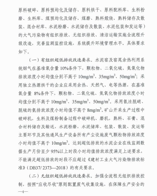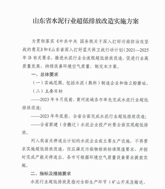 近日,為貫徹落實(shí)《中共中央國(guó)務(wù)院關(guān)于深入打好污染防治攻堅(jiān)戰(zhàn)的意見(jiàn)》和《山東省深入打好藍(lán)天保衛(wèi)戰(zhàn)行動(dòng)計(jì)劃(2021--2025年)》有關(guān)要求,推進(jìn)水泥行業(yè)全流程超低排放改造,促進(jìn)行業(yè)高質(zhì)量發(fā)展,持續(xù)改善環(huán)境空氣質(zhì)量,山東省發(fā)布水泥行業(yè)超低排放改造實(shí)施方案。