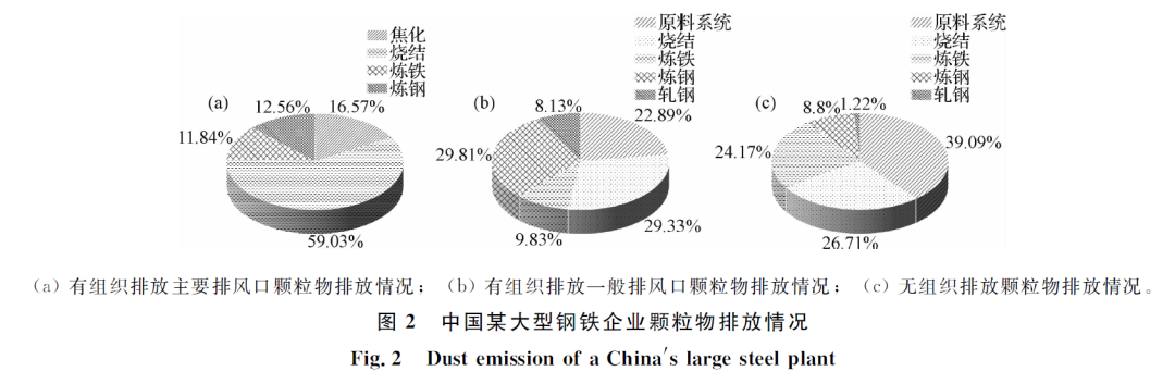 (1)鋼鐵生產(chǎn)用原燃料在運(yùn)輸、裝卸及加工生產(chǎn)過程中所產(chǎn)生的大量含塵煙氣。比如原料場中原燃料堆放、裝卸過程產(chǎn)生的粉塵;原料系統(tǒng)向高爐、燒結(jié)、球團(tuán)等工序輸送轉(zhuǎn)運(yùn)原燃料過程產(chǎn)生的粉塵;原燃料破碎篩分過程產(chǎn)生的粉塵;配料時外溢的粉塵等。除了廠區(qū)內(nèi)的運(yùn)輸污染外,中國鋼鐵企業(yè)運(yùn)輸多采用公路運(yùn)輸,導(dǎo)致在運(yùn)輸過程中會排放大量的貨物揚(yáng)塵。本文中粉塵指懸浮在空氣中的固體顆粒物的總稱,PM10是指粒徑小于10μm的粉塵,PM2.5是指粒徑小于2.5μm的粉塵。