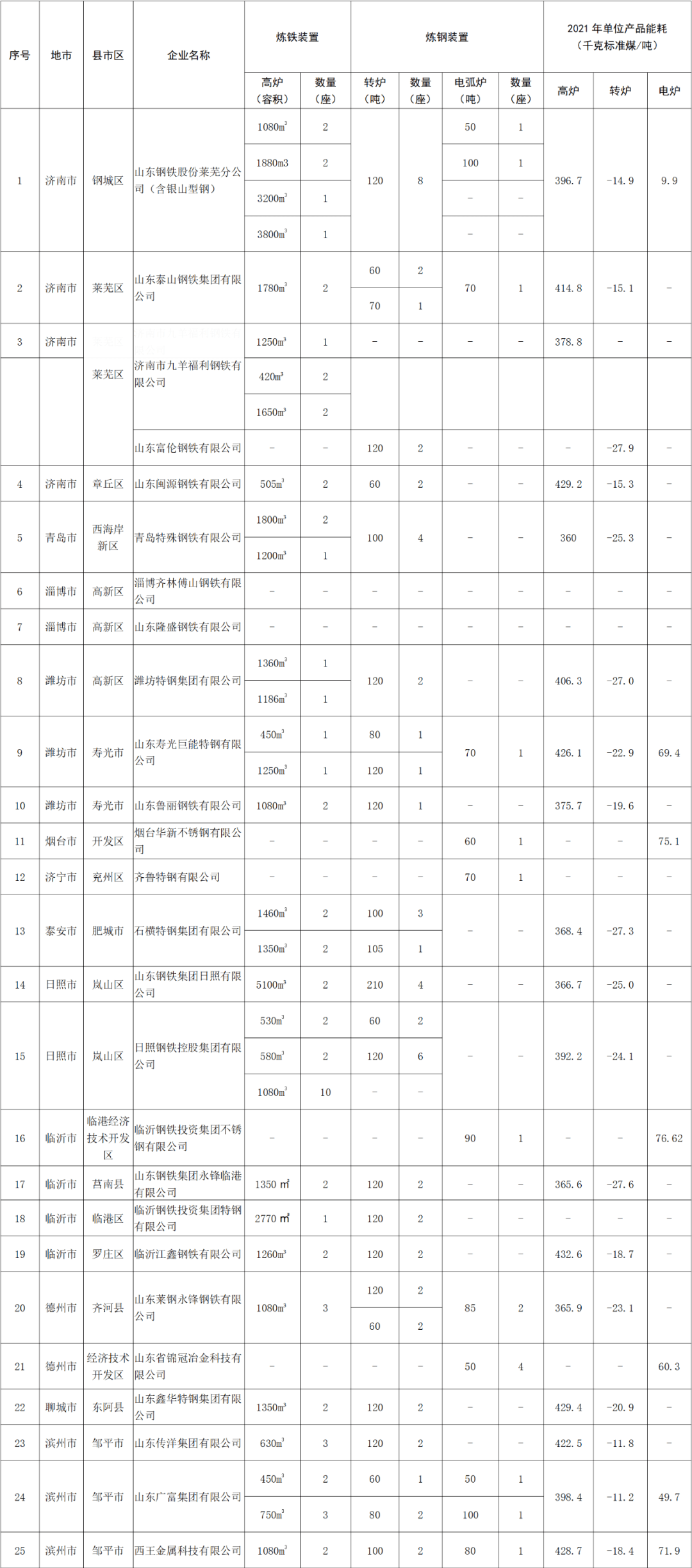 附件1:山東省鋼鐵行業(yè)能效水平清單
