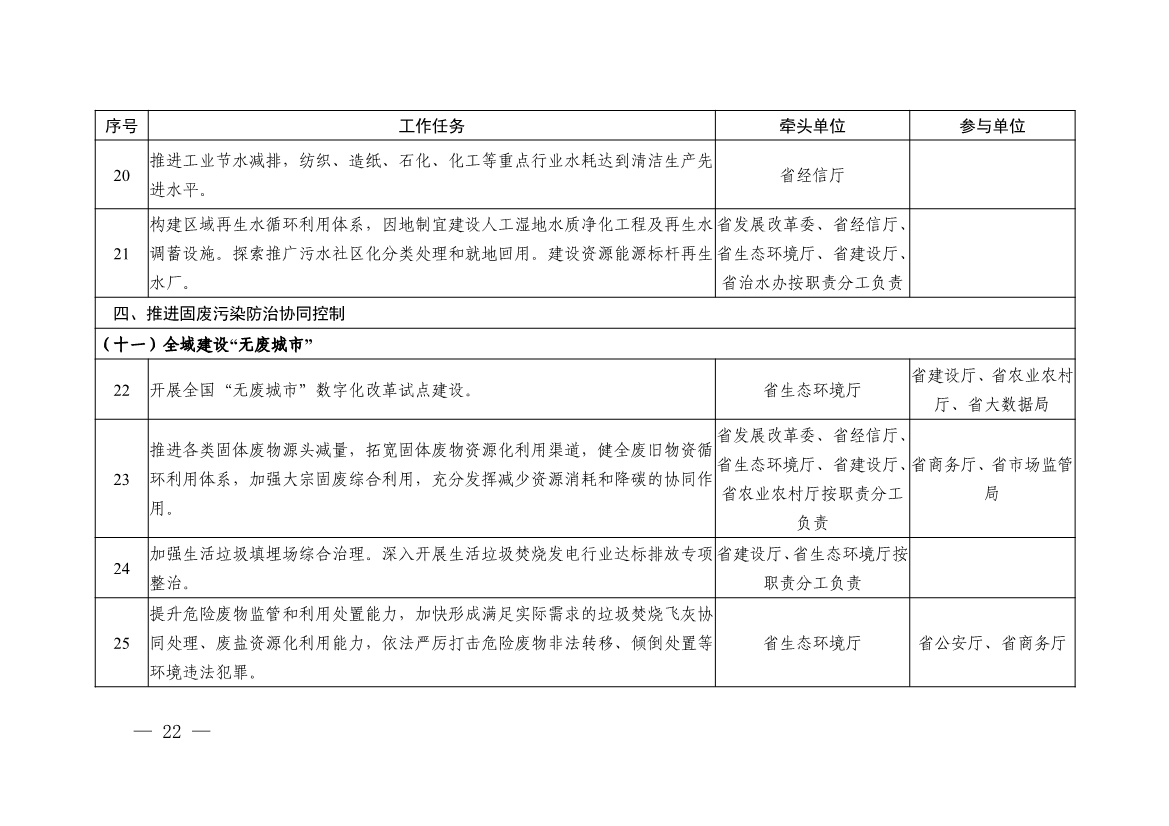 (十一)全域建設“無廢城市”。開展全國“無廢城市”數(shù)字化改革試點建設。推進各類固體廢物源頭減量。加強生活垃圾填埋場綜合治理。深入開展生活垃圾焚燒發(fā)電行業(yè)達標排放專項整治。提升危險廢物監(jiān)管和利用處置能力,加快形成滿足實際需求的垃圾焚燒飛灰協(xié)同處理、廢鹽資源化利用能力。到2025年,全省城鄉(xiāng)生活垃圾分類實現(xiàn)全覆蓋,基本實現(xiàn)危險廢物“趨零填埋”。