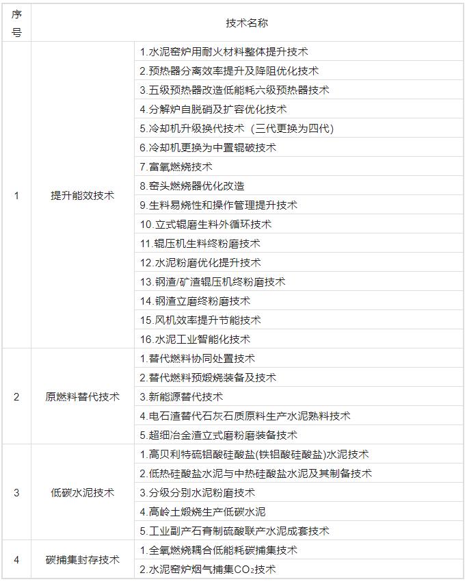 五、水泥行業(yè)節(jié)能降碳技術(shù)清單