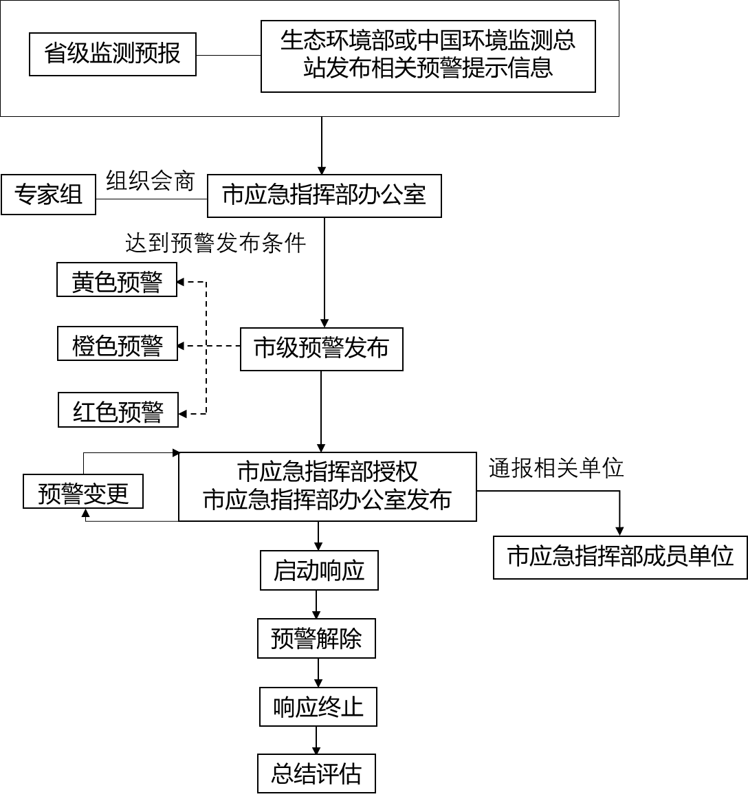 市指揮部根據(jù)湖北省重污染天氣應(yīng)急指揮部(以下簡稱“省指揮部”)辦公室預(yù)警提示,及時(shí)發(fā)布相應(yīng)級別預(yù)警。市指揮部可依據(jù)本預(yù)案,發(fā)布更高級別預(yù)警。