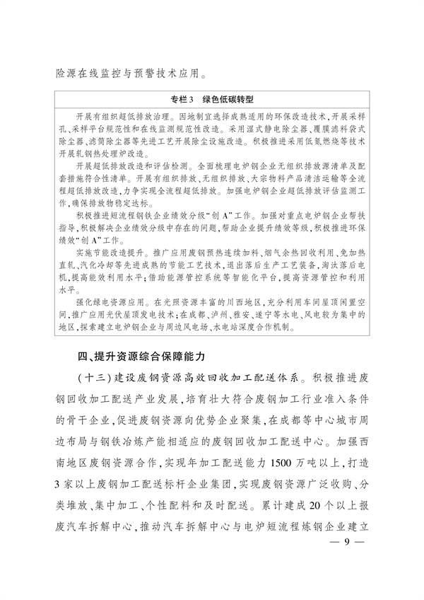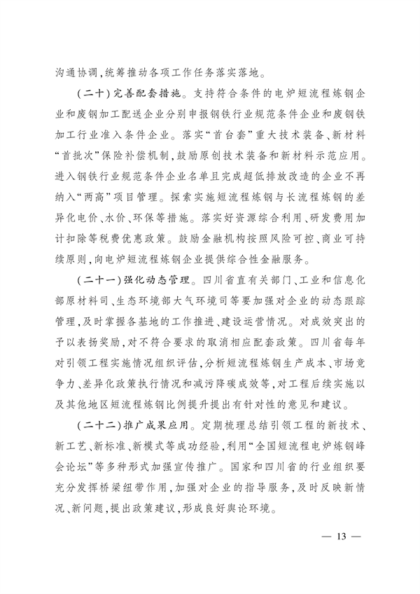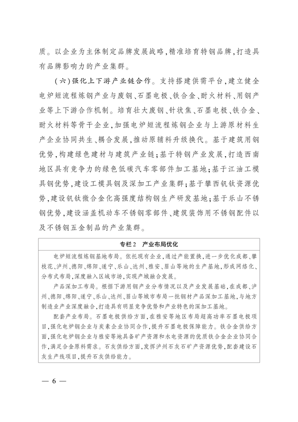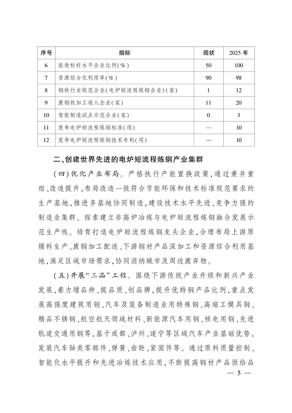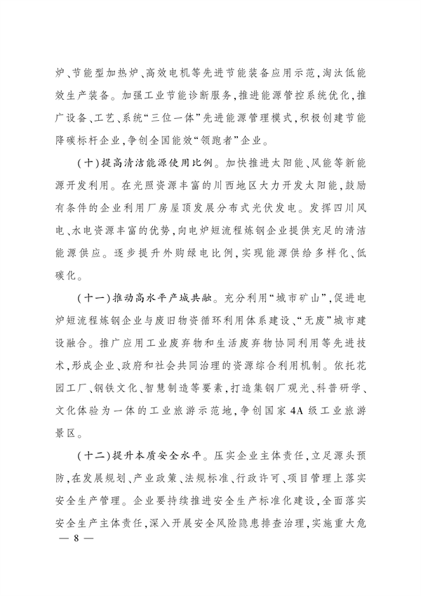 四川省人民政府工業(yè)和信息化部生態(tài)環(huán)境印發(fā)《開展電爐短流程煉鋼高質(zhì)量發(fā)展引領(lǐng)工程的實(shí)施方案》,充分發(fā)揮四川省電爐短流程煉鋼產(chǎn)業(yè)基礎(chǔ)好、水電等清潔能源豐富、廢鋼資源稟賦突出等優(yōu)勢(shì),先行先試,加快推動(dòng)電爐短流程煉鋼轉(zhuǎn)型升級(jí)。到2025年,四川省電爐短流程煉鋼基本形成先進(jìn)企業(yè)集群化發(fā)展、綠色低碳循環(huán)體系完善、資源保障能力顯著提升、智能化數(shù)字化水平先進(jìn)的發(fā)展格局、探索綠色、智能、創(chuàng)新、高效、協(xié)調(diào)的發(fā)展模式。