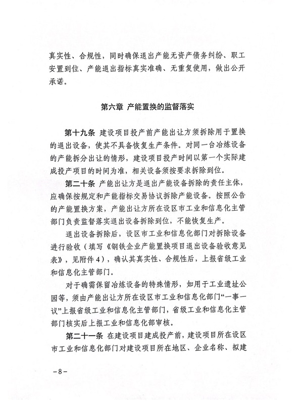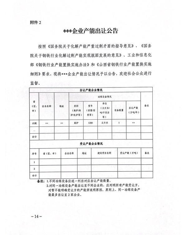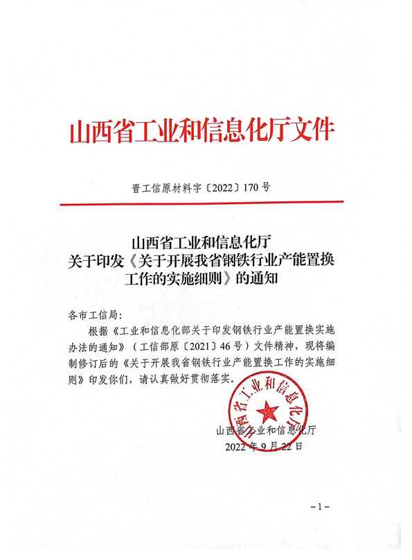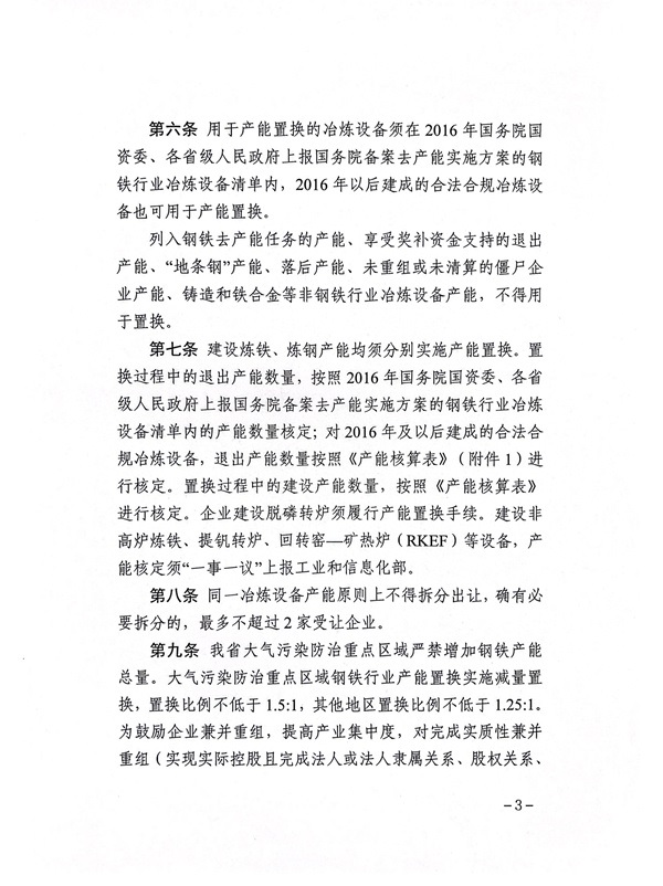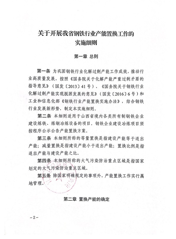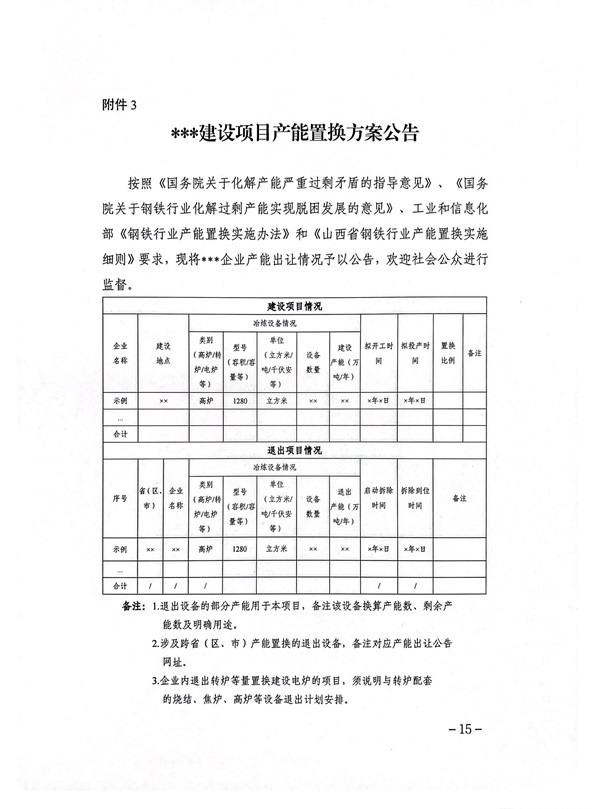 山西省工業(yè)和信息化廳印發(fā)《關(guān)于開展我省鋼鐵行業(yè)產(chǎn)能置換工作的實施細(xì)則》,規(guī)定大氣污染防治重點區(qū)域鋼鐵行業(yè)產(chǎn)能置換實施減量置換,置換比例不低于1.5:1,其他地區(qū)置換比例不低于1.25:1。為鼓勵企業(yè)兼并重組,提高產(chǎn)業(yè)集中度,對完成實質(zhì)性兼并重組后取得的合規(guī)產(chǎn)能用于項目建設(shè)時,大氣污染防治重點區(qū)域的置換比例可以不低于1.25:1,其他地區(qū)置換比例可以不低于1.1:1。