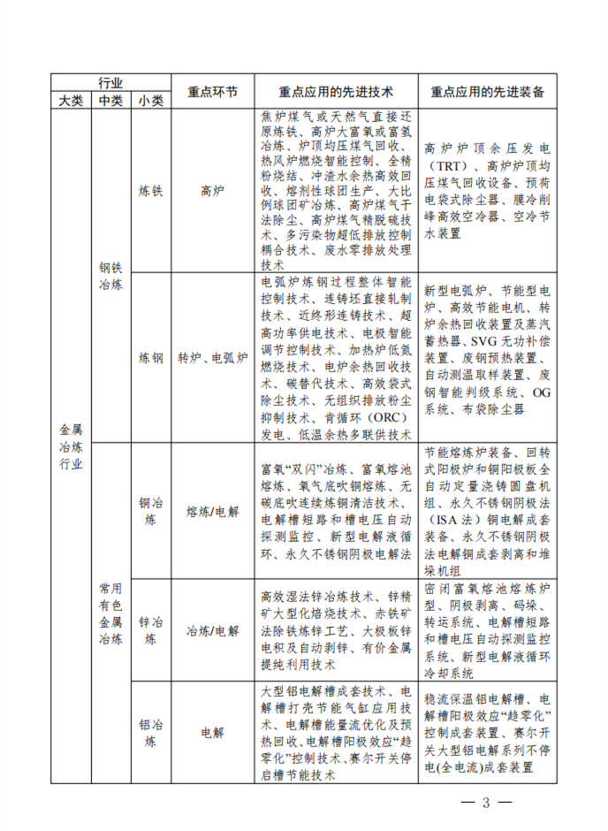 超低排放改造,高耗能工藝低耗能改造,在重點工藝環(huán)節(jié)推進(jìn)無人化、少人化改造。在鋼鐵、有色、涉爆粉塵等行業(yè)應(yīng)用粉塵涉爆領(lǐng)域濕法除塵工藝,在重點生產(chǎn)環(huán)節(jié)應(yīng)用自動化生產(chǎn)、在線監(jiān)測報警和緊急停車系統(tǒng)等安全生產(chǎn)技術(shù)。推動化工、鋼鐵、有色、建材等重點行業(yè)領(lǐng)域應(yīng)用多污染物協(xié)同治理技術(shù)、燒結(jié)煙氣內(nèi)循環(huán)、干法除塵等技術(shù)。推進(jìn)跨產(chǎn)業(yè)跨領(lǐng)域耦合提效,鼓勵鋼化聯(lián)產(chǎn)、煉化集成等,實施窯爐改造、余熱余壓利用、能量系統(tǒng)優(yōu)化、超低排放、深度治理等技術(shù)改造。