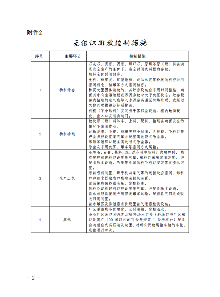 無組織排放控制要求。加強物料儲存、物料輸送及生產(chǎn)工藝過程無組織排放控制。在保障安全生產(chǎn)的前提下,針對性采取封閉、密閉等治理措施,有效提高廢氣收集效率,產(chǎn)塵點及車間不得有可見煙粉塵外逸(詳見附件2)。