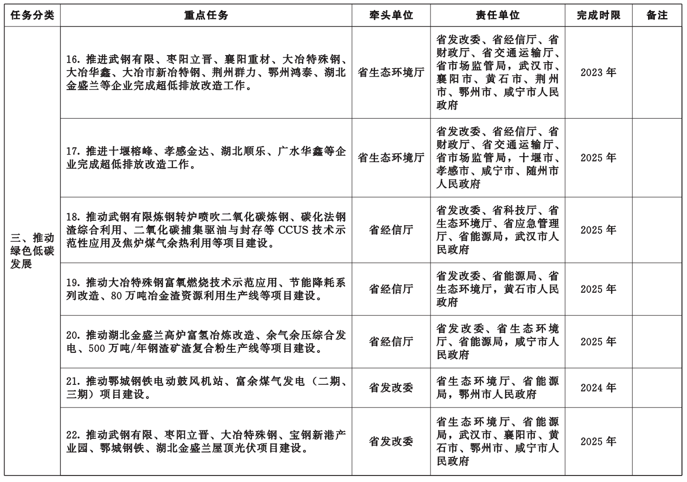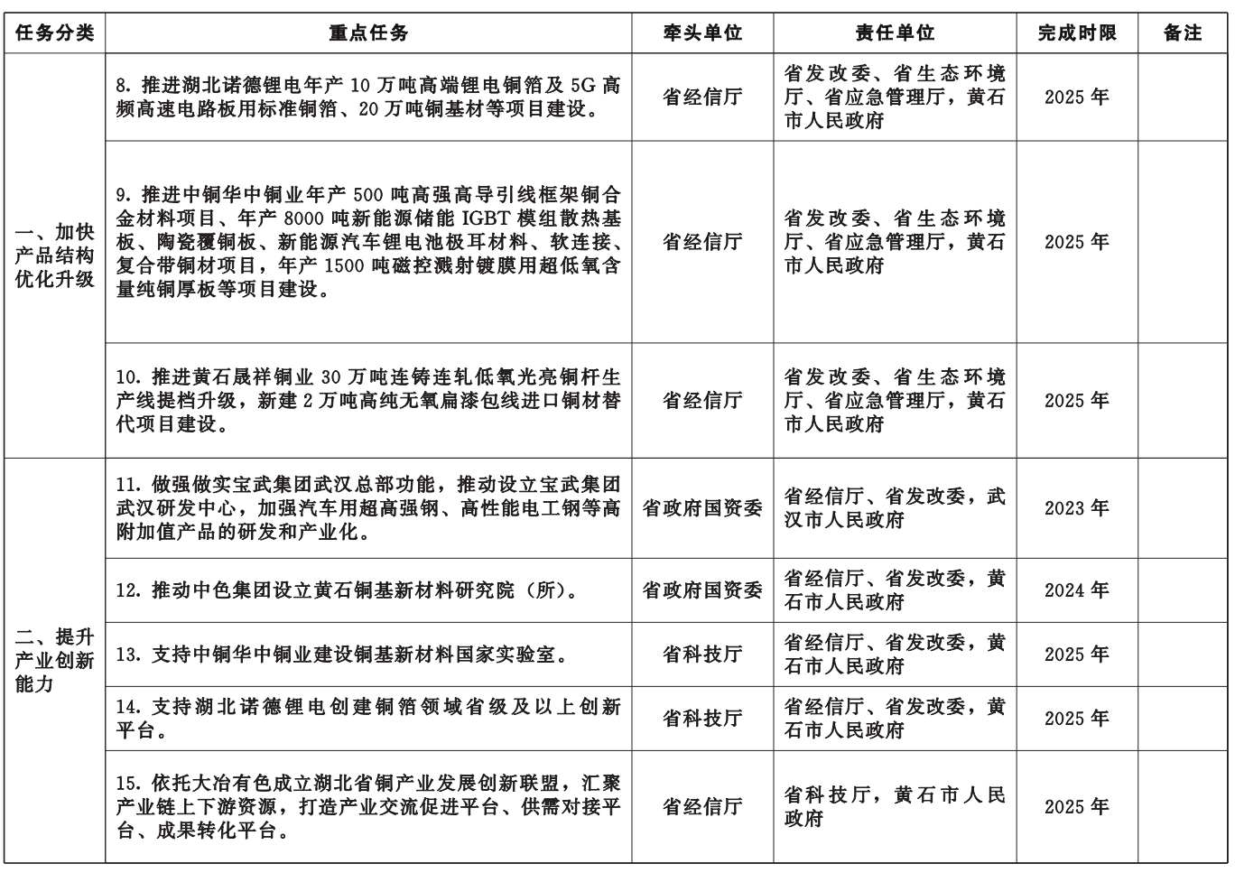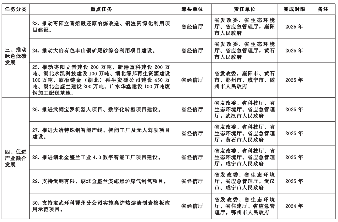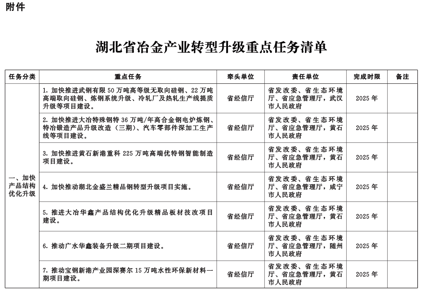 附件:湖北省冶金產業(yè)轉型升級重點任務清單