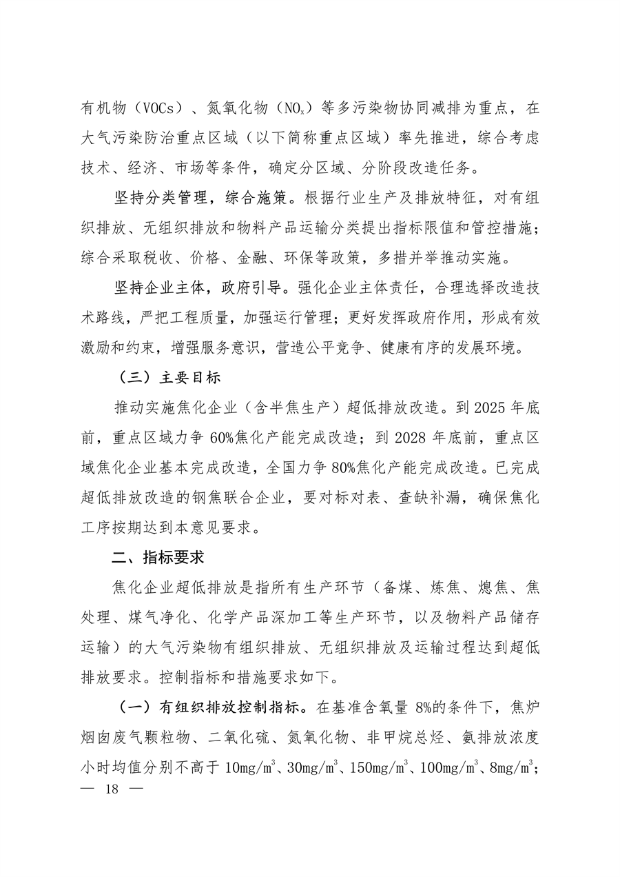 要求在基準(zhǔn)含氧量8%的條件下,焦?fàn)t煙囪廢氣顆粒物、二氧化硫、氮氧化物、非甲烷總烴、氨排放濃度小時(shí)均值分別不高于10mg/m3、30mg/m3、150mg/m3、100mg/m3、8mg/m3;生產(chǎn)廢水處理設(shè)施非甲烷總烴濃度小時(shí)均值不高于100mg/m3。其他污染源顆粒物排放濃度小時(shí)均值不高于10mg/m3。